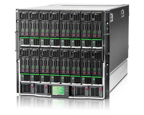 Un gabinete BladeSystem c7000 tiene capacidad para hasta 16 servidores y/o blades de almacenamiento, además de conmutadores de red y almacenamiento redundantes. Incluye un plan de nivel medio compartido de varios terabits de alta velocidad para la conectividad por cable desde los blades del servidor hasta la red y el almacenamiento compartido. La energía se suministra a través de un panel trasero de alimentación agrupado que garantiza que la capacidad total de las fuentes de alimentación redundantes de conexión en caliente esté disponible para todos los blades.